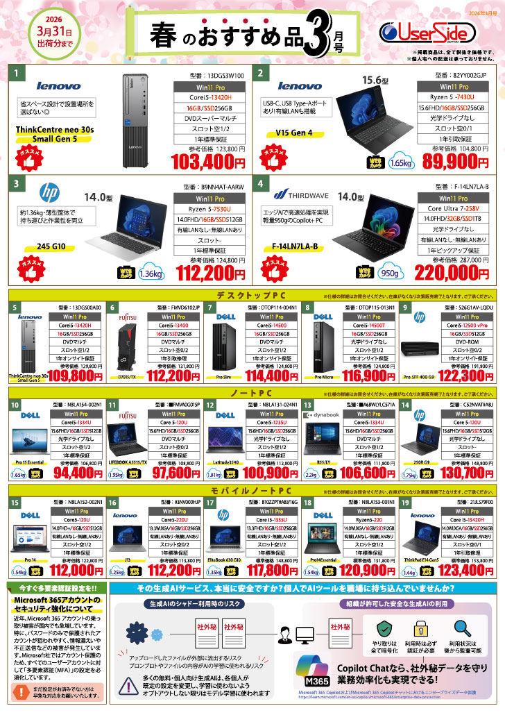 いま値上がり中のPCが、まだまだお得です! デスクトップもノートもモバイルも、おススメできる商品を揃えました。