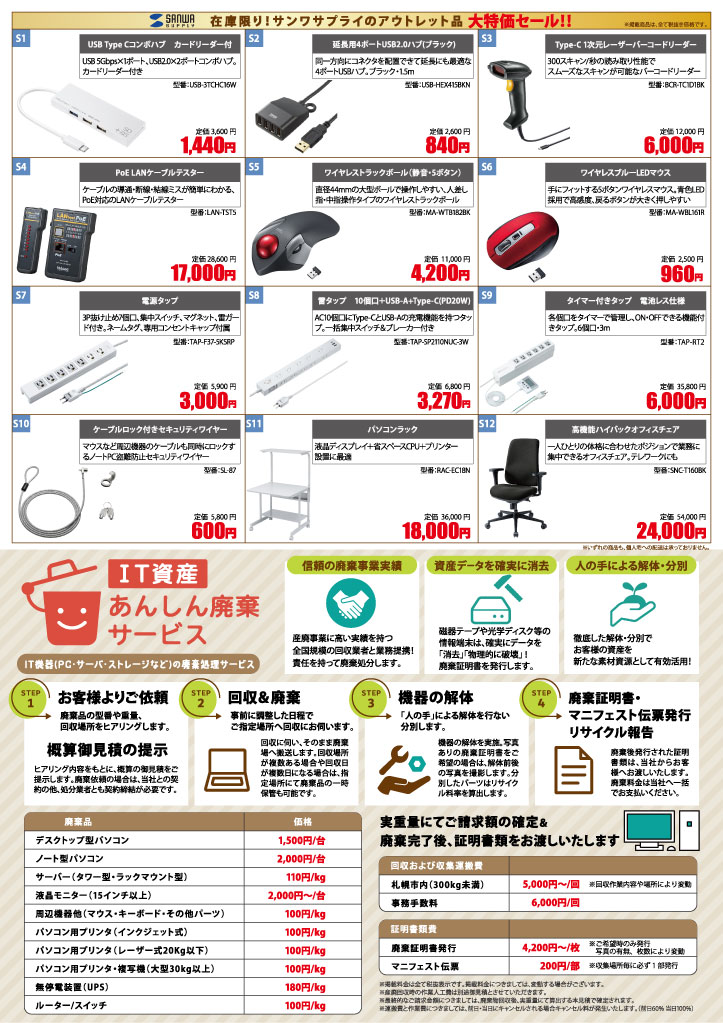 アウトレットの大特価品は在庫限り! ぜひお早めにご検討ください!
