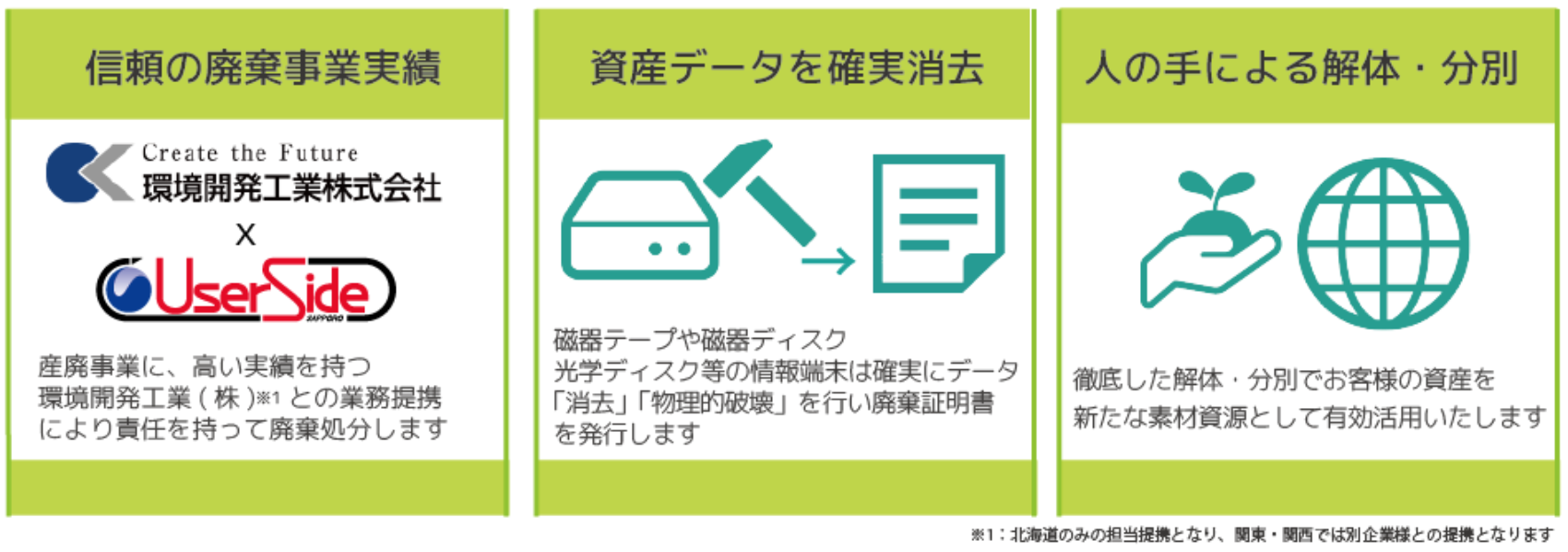 「確実な資産データの消去」と 「徹底した解体と分別による資源活用」を実現!