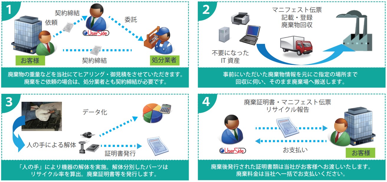 お客様の業務で役目を終えたIT資産を、 責任を持って回収し廃棄いたします!