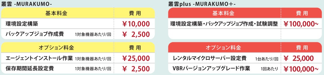 ※掲載価格は、標準データ保存期間7日間の場合の目安費用です。初回契約時の費用は、ヒアリングの上御見積にてご提示いたします。