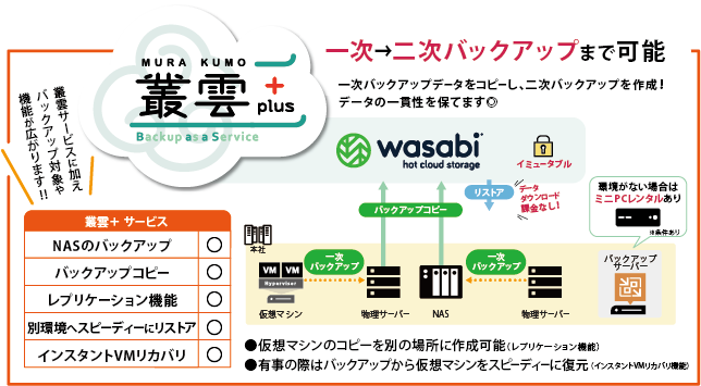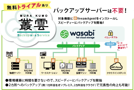 バックアップソフトウェアの「Veeam」とクラウドストレージの「Wasabi」を組み合わせ