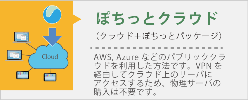 オンプレミス、クラウドのどちらでもお選びいただけます。