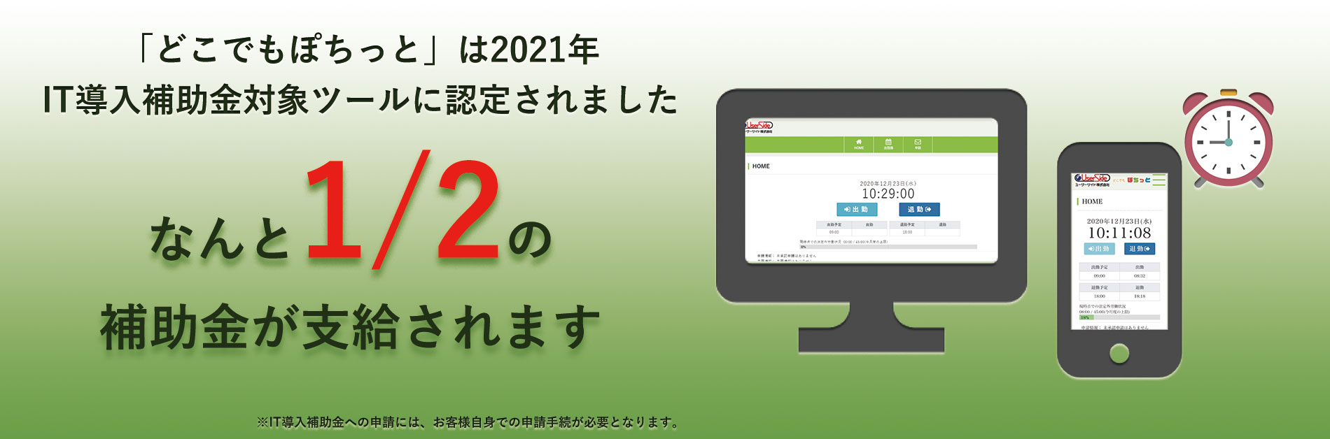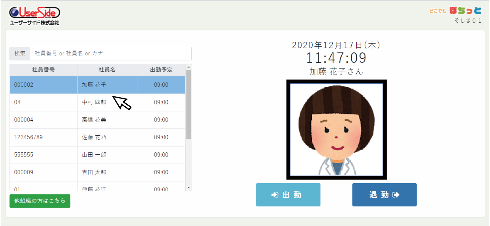 出退勤時に画面をぽちっとクリックするだけで打刻完了!